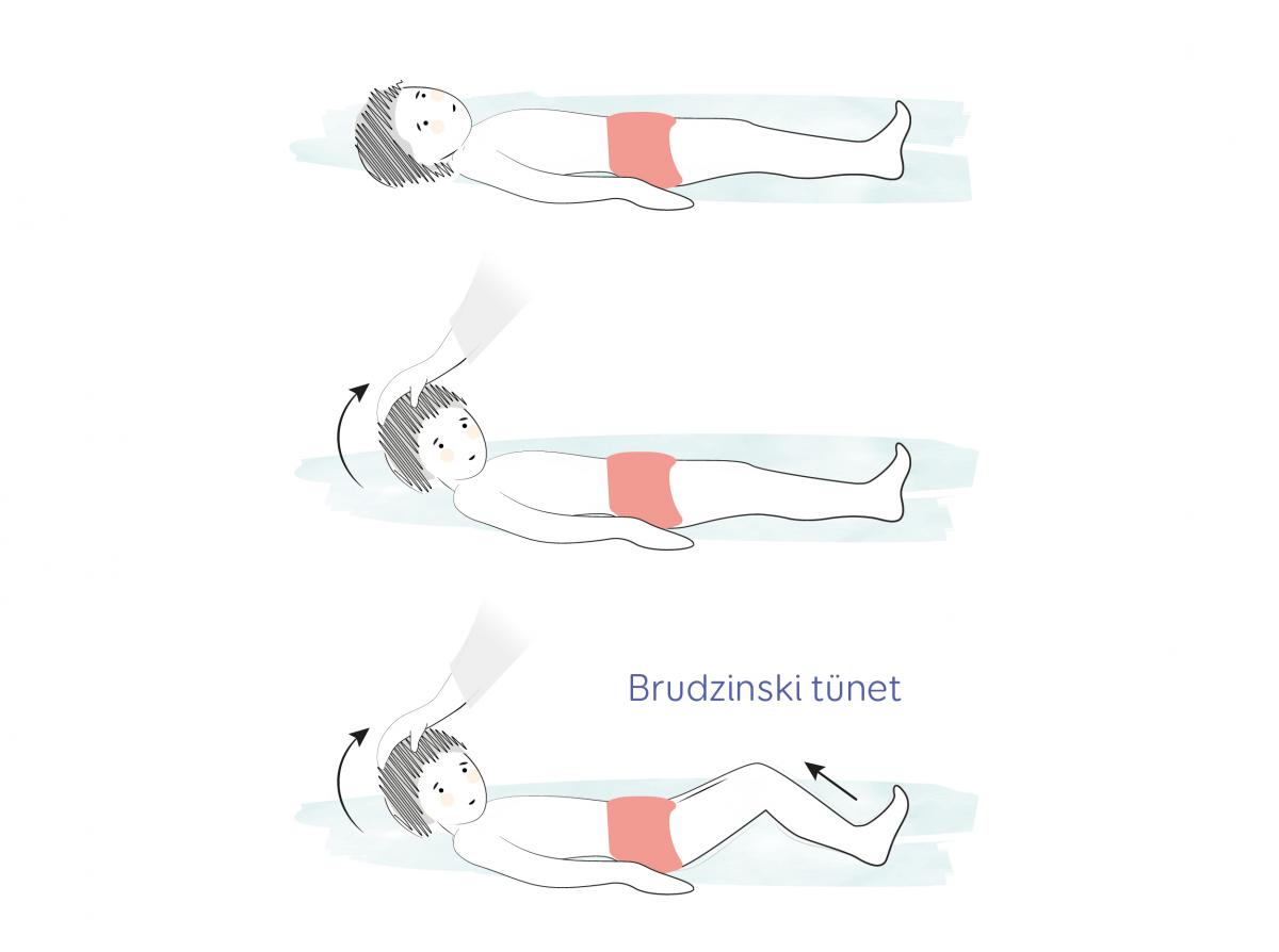 Ha tarkómerevséget sejtünk, az agyhártyagyulladás jele lehet. Ezt úgy vizsgálhatjuk, hogy a háton fekvő gyermek fejét emelve felemelkedik a térde is (Brudzinski jel). Lásd az ábrát.